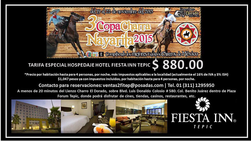 Del 19 al 22 de Noviembre, en el Lienzo “El Dorado” de Tepic, se viene la tercera edición de la Copa Charra Nayarita 2015, que está dotada de más que atractivos premios en efectivo.