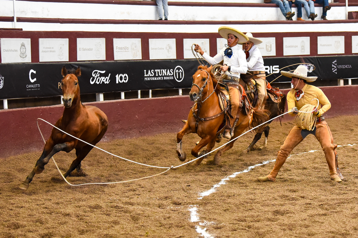 Una extraordinaria jineteada de yegua de Luis Contreras fue completada para cosechar 25 tantos, y entonces vinieron las seis manganas que acertaron Diego Fernández y Fernando Loy: Diego cuajó las tres a pie para acumular 68 buenos, y Loy agregó 61 de las tres a caballo, ante la algarabía general en el Monumental de Zacatecas; Contreras, con su paso de la muerte de 18, puso cifras definitivas de 367 puntos.